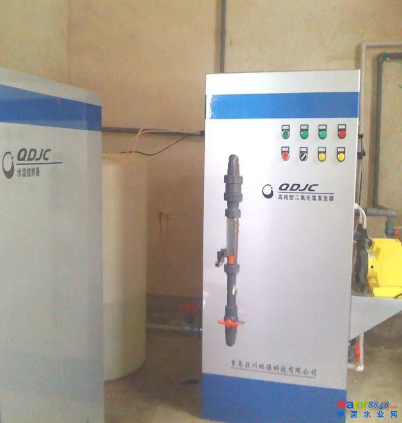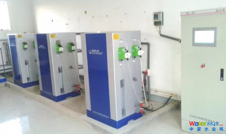 3、安裝方便,只需將二氧化氯發(fā)生器安放在加藥間后,將計(jì)量泵、加藥管路、進(jìn)、出水管等連接好,并將控制柜電源和檢測(cè)儀表信號(hào)送到控制柜就可以啟動(dòng)。