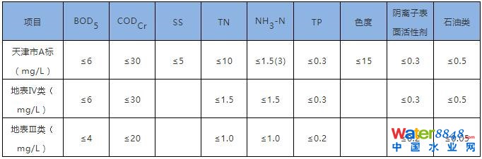 目前,在我們國家很多地區(qū),現(xiàn)執(zhí)行的污水處理標(biāo)準(zhǔn)中,部分指標(biāo)達不到地表Ⅳ類、Ⅲ類水標(biāo)準(zhǔn)。以天津市為例,從2015年起,天津市實施《城鎮(zhèn)污水處理廠污染物排放標(biāo)準(zhǔn)》(DB12/599-2015)。其水質(zhì)指標(biāo)與地表Ⅳ類、Ⅲ類水的對比見表1.1: