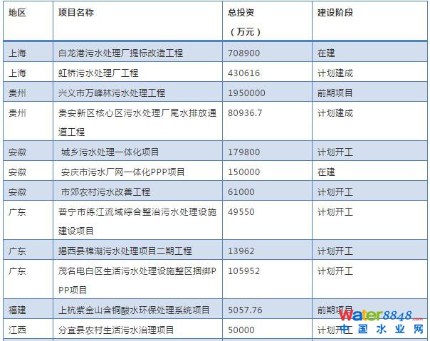 。ㄒ唬13省投1203.18億元建設(shè)155個重點污水處理項目