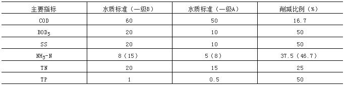 表1主要污染物削減量要求(單位:mg/L)