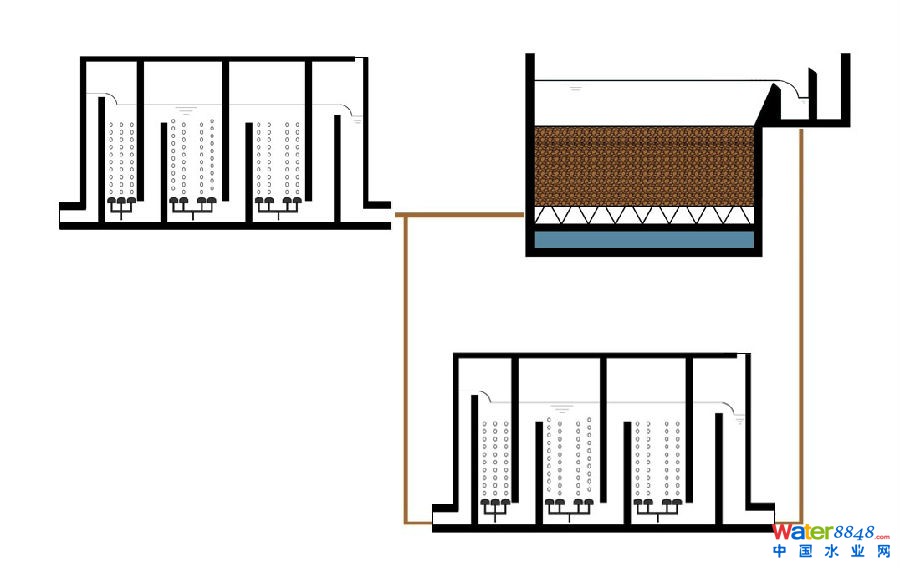 在前端生化尚不徹底或難降解COD較高的情況下,需要執(zhí)行更高的排放標(biāo)準(zhǔn),例如COD<30mg/l時,可以采用前后臭氧組合投加,臭氧氧化去除一部分COD,同時為后續(xù)Biofix生物濾池單元產(chǎn)生BOD,采用生化的方法再去除一部分COD。采用前后臭氧以及三級投加方式,利用臭氧氧化反應(yīng)的最佳點從而可以使得臭氧投加最小,降低運行成本