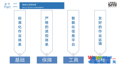 在此情況下,污水處理廠如何進(jìn)行管理?我們先來(lái)看看政府方面的倡導(dǎo)。今年二會(huì)期間,習(xí)總書記在參加上海代表團(tuán)審議時(shí),提出了“城市管理的繡花”理論,同年7月,上海市委書記韓正在上海城投集團(tuán)調(diào)研的時(shí)候指出:上海城市基礎(chǔ)設(shè)施建設(shè),正從大規(guī)模建設(shè)進(jìn)入到精細(xì)化運(yùn)行階段,要求大家把更多精力放到城市基礎(chǔ)設(shè)施安全高效和持續(xù)運(yùn)行上面。城鎮(zhèn)污水處理廠作為城市基礎(chǔ)設(shè)施的組成組成部分,在高標(biāo)運(yùn)行、高壓監(jiān)管的大環(huán)境下,更應(yīng)該主動(dòng)承擔(dān)社會(huì)責(zé)任,主動(dòng)適應(yīng)高壓監(jiān)管,細(xì)致剖析運(yùn)行瓶頸,深度挖掘效能潛能,將管理程度做到精益求精,將管理顆粒度做到細(xì)致入微。因此我們認(rèn)為,污水處理廠精細(xì)化運(yùn)行將成為必然選擇。