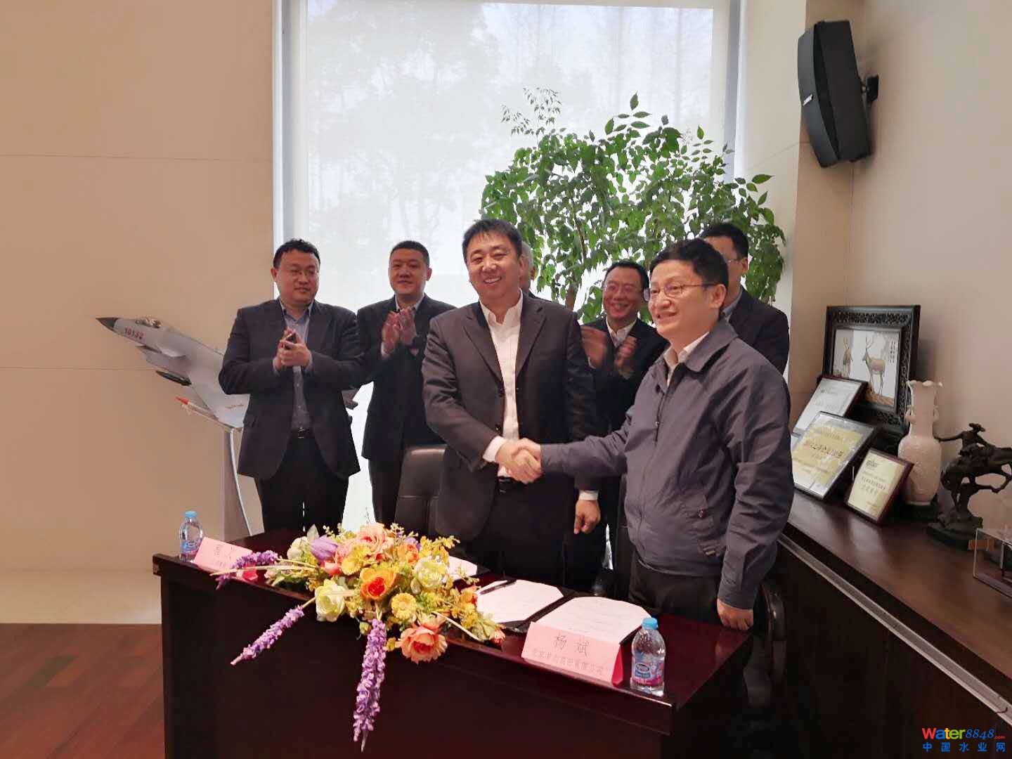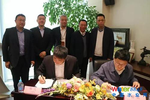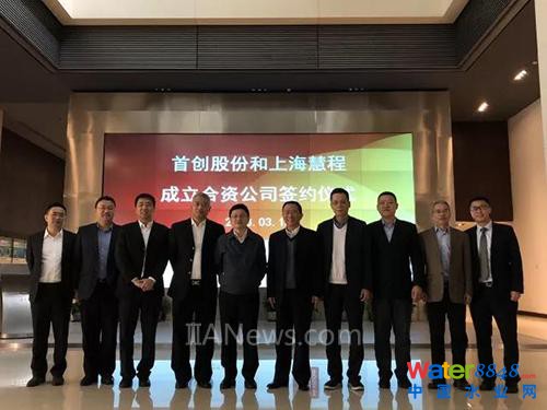 首創(chuàng)股份總經(jīng)理?xiàng)畋笈c上海慧程總經(jīng)理程義代表雙方在合資公司成立協(xié)議上簽字,并致辭。