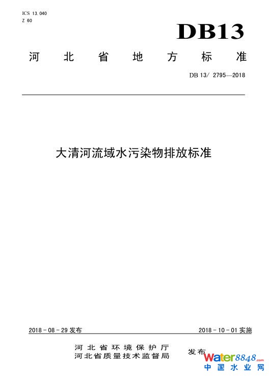 河北地方標(biāo)準(zhǔn)《大清河流域水污染物排放標(biāo)準(zhǔn)》發(fā)布 10月1日起施行
