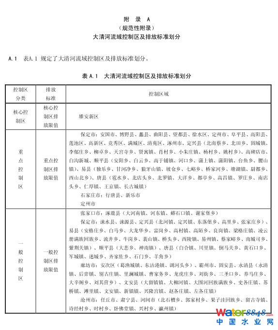 大清河流域水污染物排放標(biāo)準(zhǔn)
