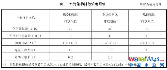 4.2.1自本標(biāo)準(zhǔn)實施之日起,核心控制區(qū)、重點控制區(qū)和一般控制區(qū)內(nèi),新(改、擴)建排污單位的水污染物排放限值按表1規(guī)定執(zhí)行。當(dāng)新(改、擴)建排污單位下游配套建設(shè)人工濕地水質(zhì)凈化工程且同時滿足以下條件時,下游人工濕地水質(zhì)凈化工程出水口的水污染物排放限值執(zhí)行本標(biāo)準(zhǔn)表1規(guī)定: