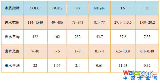 項(xiàng)目設(shè)計(jì)進(jìn)出水主要指標(biāo)如1所示。
