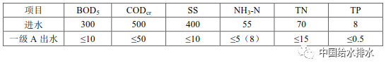 表1 進(jìn)出水設(shè)計(jì)指標(biāo)