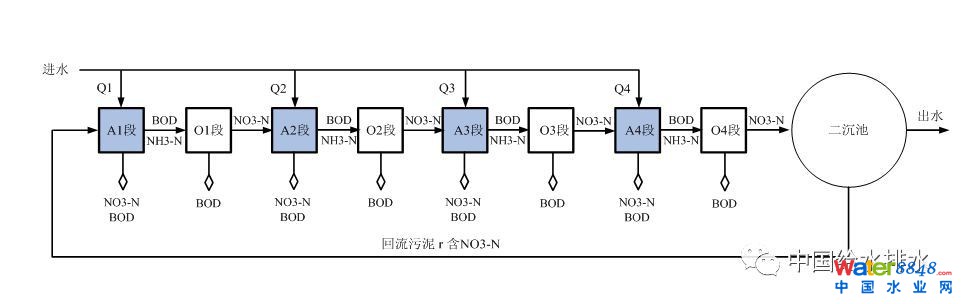 圖2 分段進(jìn)水多級AO工藝原理圖