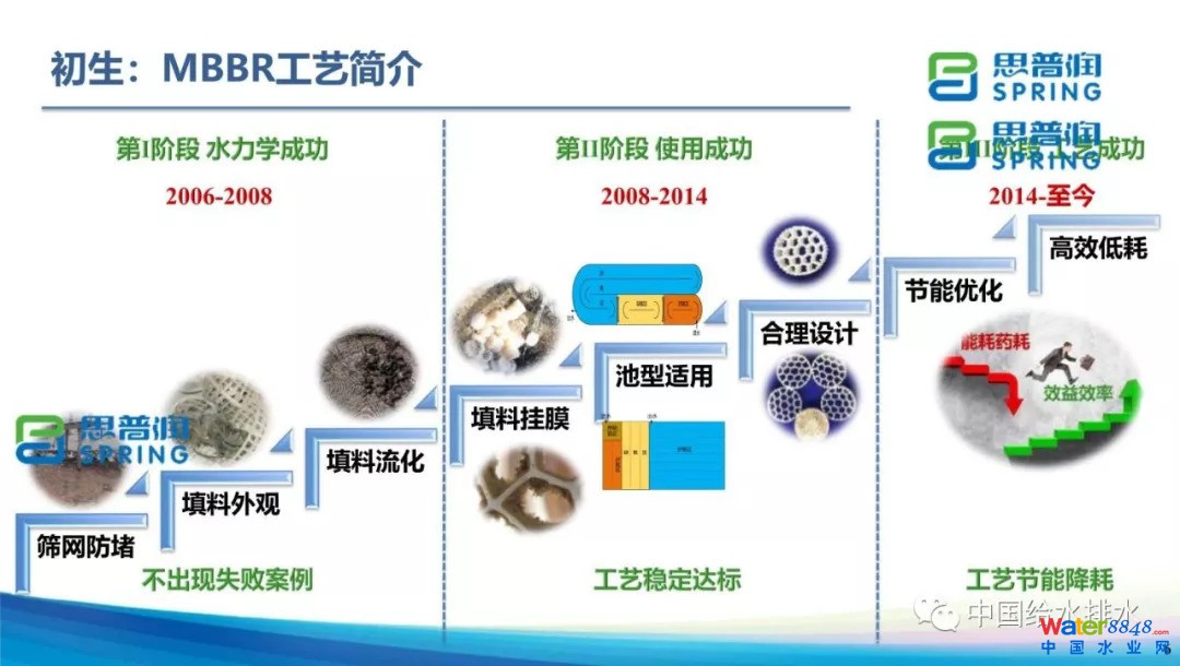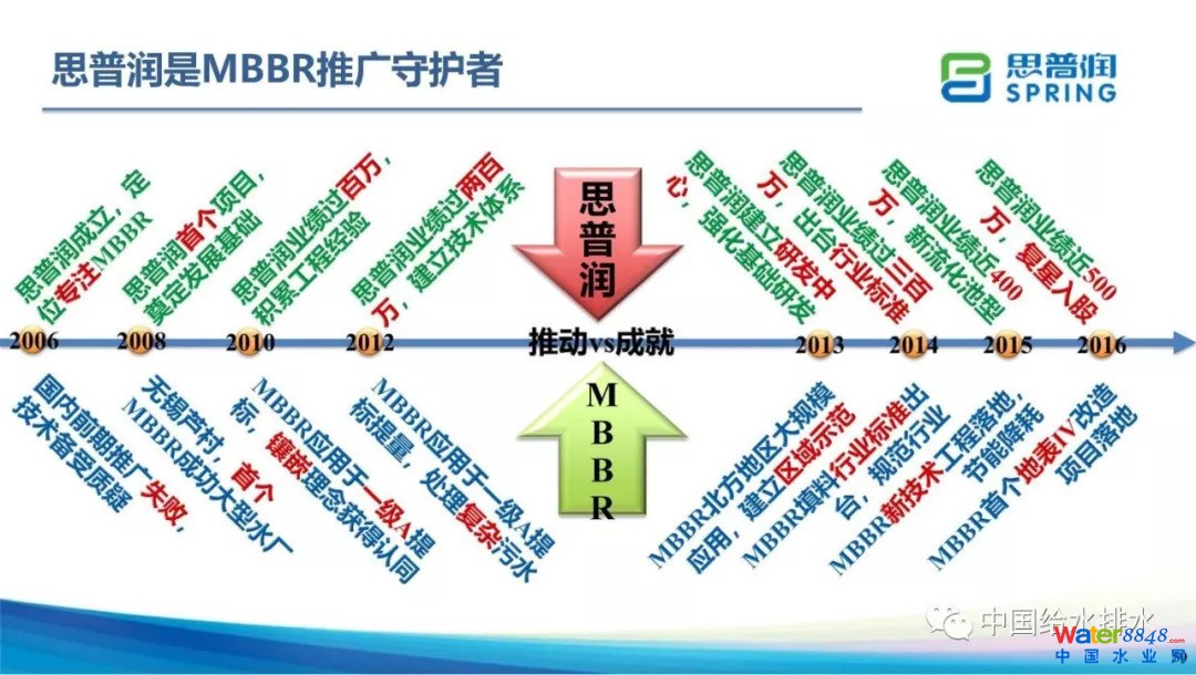 最后為大家介紹一下思普潤(rùn)公司,思普潤(rùn)成立于2006年,12年來(lái)專(zhuān)注于MBBR的工藝研發(fā)和工程推廣,目前公司已經(jīng)做了一百多個(gè)項(xiàng)目,從一級(jí)A到準(zhǔn)IV類(lèi)水,思普潤(rùn)也是隨著中國(guó)的排水逐漸發(fā)展起來(lái)的,思普潤(rùn)是MBBR工藝的推廣和守護(hù)者。
