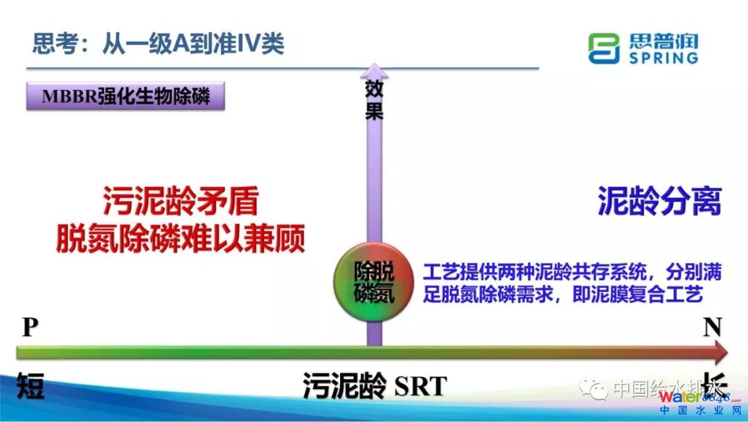 整體而言,剛才我說(shuō)MBBR可以同步脫氮除磷,強(qiáng)化硝化反硝化大家可能還有疑問(wèn)。實(shí)際上,MBBR對(duì)于硝化或者反硝化是通過(guò)直接富集菌種,對(duì)于反硝化的強(qiáng)化要不直接投加在缺氧段,要么通過(guò)池容的分配來(lái)擴(kuò)大缺氧區(qū),再一個(gè)就是SND,助力TN的去除效果的提升。對(duì)于除磷,一方面是可以縮短泥齡,再一個(gè)反硝化的徹底也為除磷提供了良好的條件。