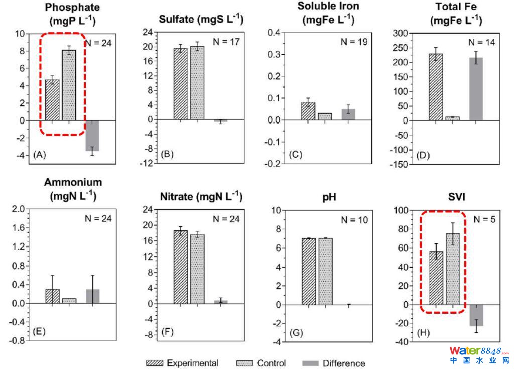 圖2加鐵后SBR出水各物質(zhì)含量和污泥的特征--來自原文