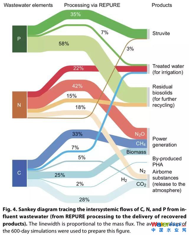 文章中通過整合水質(zhì)特征、系統(tǒng)效能、物質(zhì)遷移、能量收支與生態(tài)環(huán)境影響等多層數(shù)據(jù)流,開發(fā)出了動態(tài)模擬(DPM)、物質(zhì)流分析(SFA)與生命周期評估(LCA)為一體的可視化方法學(xué),為污水資源化新體系從概念發(fā)展到工藝設(shè)計與優(yōu)化提供了數(shù)據(jù)驅(qū)動的研究新方法。