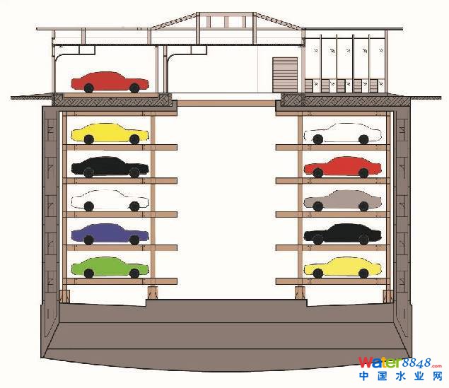 車庫(kù)選擇在老舊小區(qū)、綠地地下建設(shè),占地小,對(duì)環(huán)境影響小,為緩解城市“停車難”問題,開辟一個(gè)新的解決途徑。