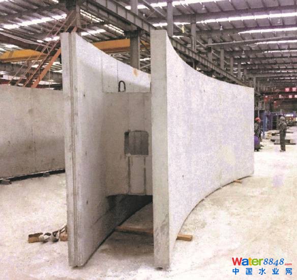 本工程使用方法先將井筒沿高度拆分成6層,底層為刃腳層,其余5層為標(biāo)準(zhǔn)層,每層拆分為10塊,每塊內(nèi)、外側(cè)墻通過連接肋相互固結(jié)。所有內(nèi)、外側(cè)墻均采用高精度大塊定型鋼模板在工廠預(yù)制,標(biāo)準(zhǔn)化、模塊化程度高。