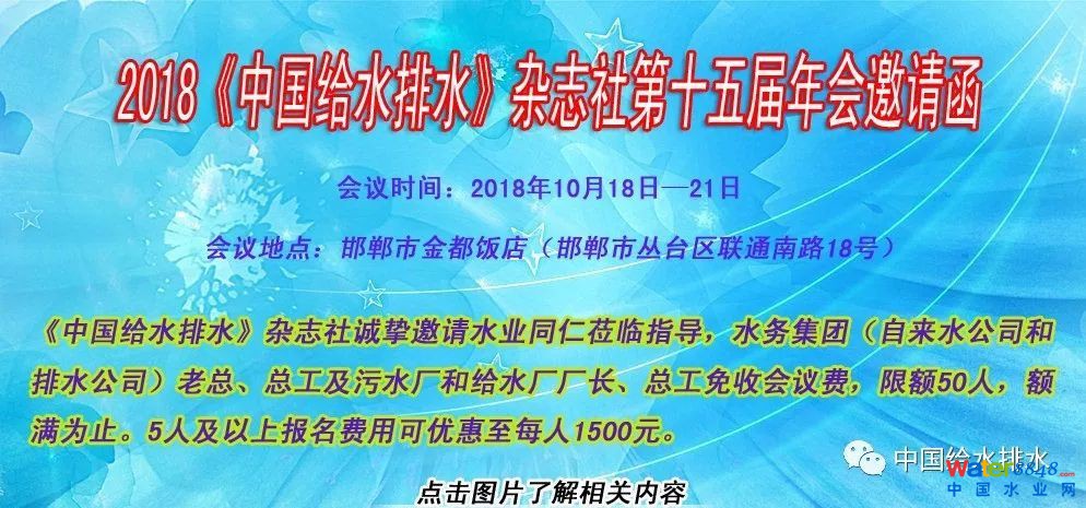 2018年《中國給水排水》雜志社第十五屆年會(huì)暨水安全保障及水環(huán)境綜合整治高峰論壇會(huì)議通知
