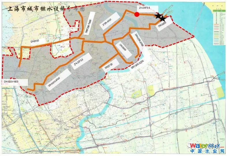 上海市2017年1-7月份統(tǒng)計(jì)污水量為700萬立方米/天,每萬噸污泥1.32噸干基。整個(gè)上海50多座廠,最近正在新建幾座,建成后水量應(yīng)該突破700萬立方米/天。竹園廠的系統(tǒng)占了1/3的區(qū),經(jīng)過多年建設(shè)全部匯集到江邊,現(xiàn)在已經(jīng)建好兩座廠,如下圖是整個(gè)廠的服務(wù)面積,服務(wù)上海1/3的水量。