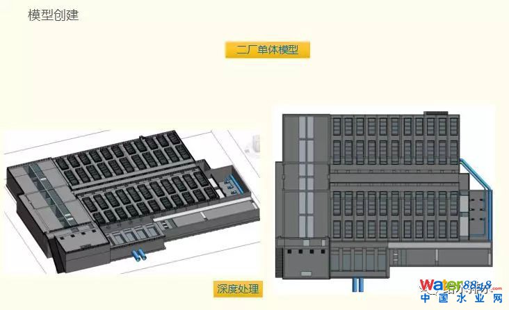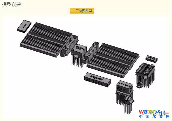 這是我們建模初期的圖,對一廠要建深度處理區(qū)和新建幾塊進(jìn)行的建模。