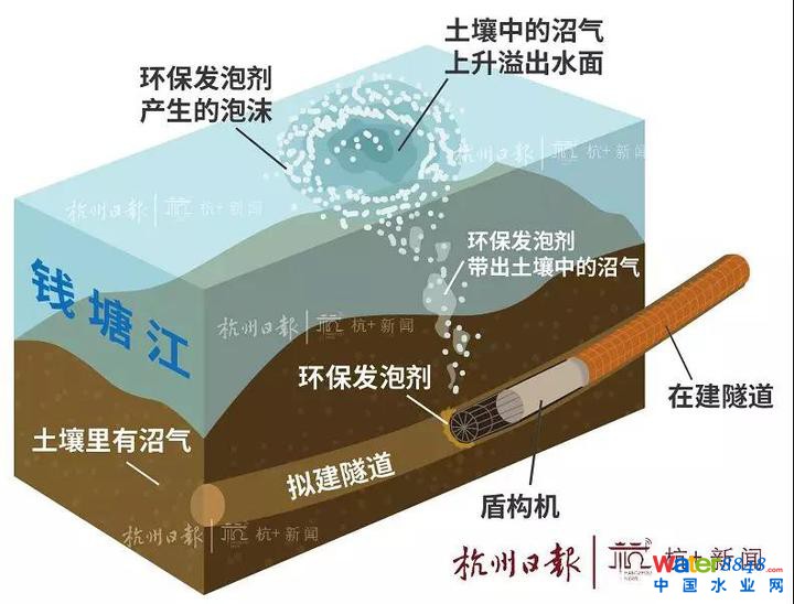 杭州市建委等部門經(jīng)調(diào)查分析,昨日晚間發(fā)布說明,確定泡沫出現(xiàn)的區(qū)域為地鐵5號線右線過江隧道(由北向南)掘進(jìn)盾構(gòu)工作位置的上方,江面泡沫為地層中的沼氣夾帶施工盾構(gòu)潤滑用的發(fā)泡劑引起,發(fā)泡劑為環(huán)保材料。