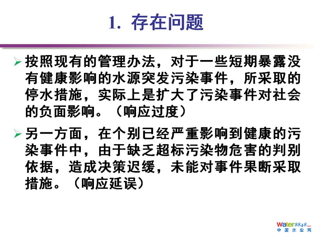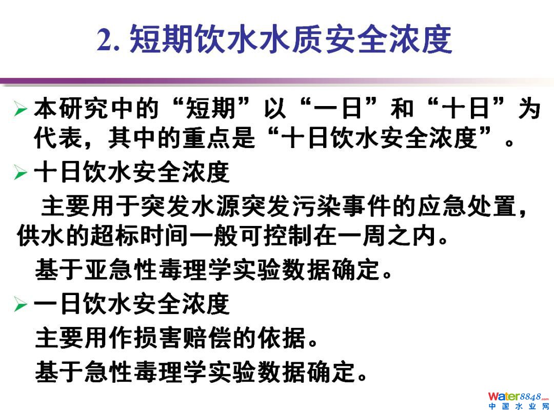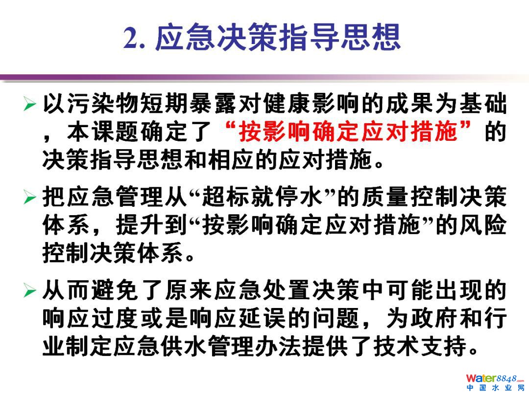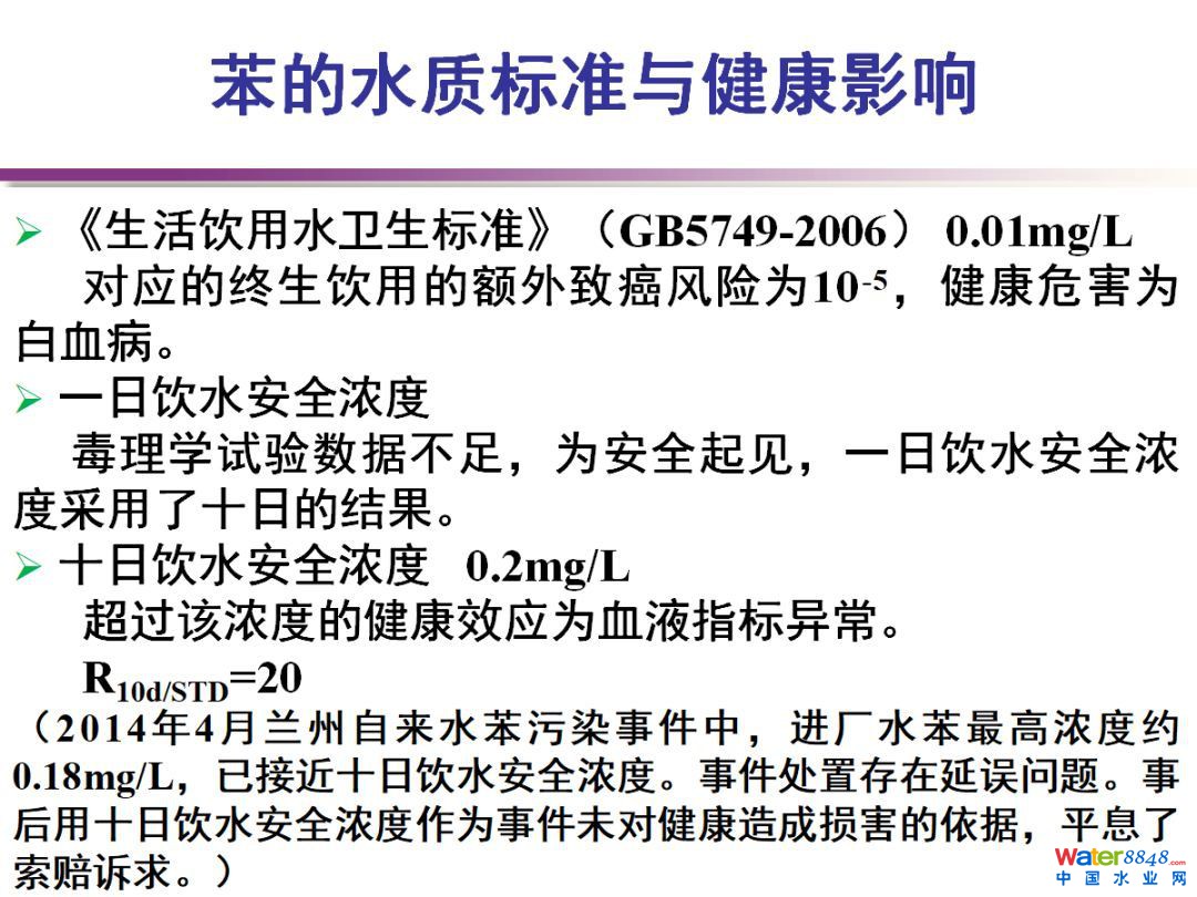 編者按:2018年10月19日,《中國(guó)給水排水》雜志社第十五屆年會(huì)暨水安全保障及水環(huán)境綜合整治高峰論壇在河北邯鄲正式開幕。清華大學(xué)環(huán)境學(xué)院張曉健教授發(fā)表了50分鐘的開場(chǎng)報(bào)告,題目:水源突發(fā)污染的飲水健康影響與應(yīng)急管理對(duì)策。該報(bào)告基于“十二五”水專項(xiàng)研究成果,給出了50種污染物短期(1日、10日)飲水水質(zhì)安全濃度,并以鎘、砷、苯、三氯甲烷為例進(jìn)行了說明。該成果可用于指導(dǎo)應(yīng)急決策,使應(yīng)急管理從“超標(biāo)就停水”的質(zhì)量控制決策體系提升到“按影響確定應(yīng)對(duì)措施”的風(fēng)險(xiǎn)控制決策,從而避免原來應(yīng)急處理決策中可能出現(xiàn)的響應(yīng)過度或是響應(yīng)延遲的問題,可為政府和行業(yè)制訂應(yīng)急供水管理辦法提供技術(shù)支持。