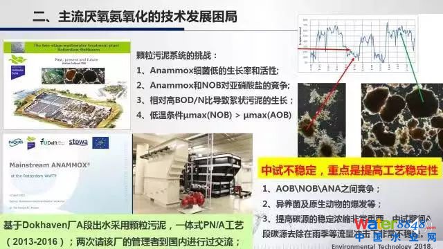 因為中試氮去除率達到60%~70%,但是在不穩(wěn)定的狀態(tài)下可能只有10%~20%。 最近Mark教授提出,顆粒污泥類型的主流厭氧氨氧化今后應(yīng)主要解決運行穩(wěn)定性問題。