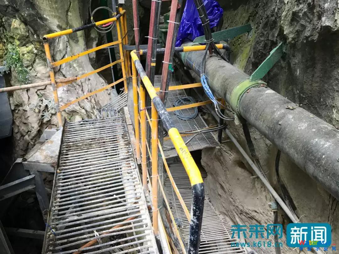 發(fā)財洞受污地下水題處理裝置抽水段,正在將污水從地下溶洞中抽出
