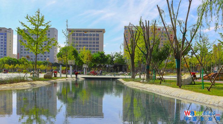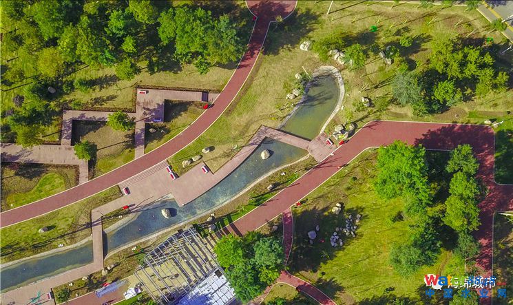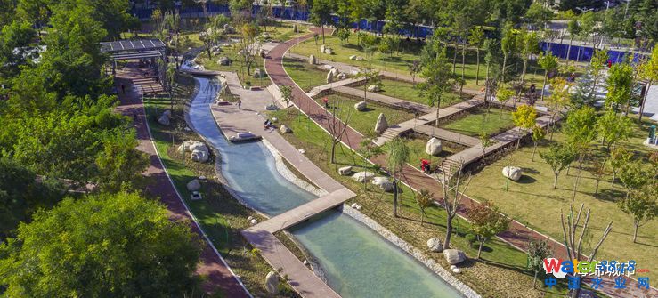 3.水系景觀改造:將原來(lái)水體硬質(zhì)駁岸改建為生態(tài)型水系,循環(huán)暢通提升水質(zhì);增設(shè)棧道、更新盛世古鼎、改造公廁及其他基礎(chǔ)設(shè)施,提升景觀品質(zhì);增設(shè)下沉式綠地、植草溝、雨水花園、透水鋪裝、雨水回用設(shè)施等海綿設(shè)施,實(shí)現(xiàn)地塊雨水滯蓄、凈化、收集和超量外排。