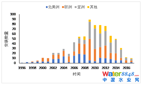 Fig.1Application trends of MBR installations in the world between 1999 and 2017