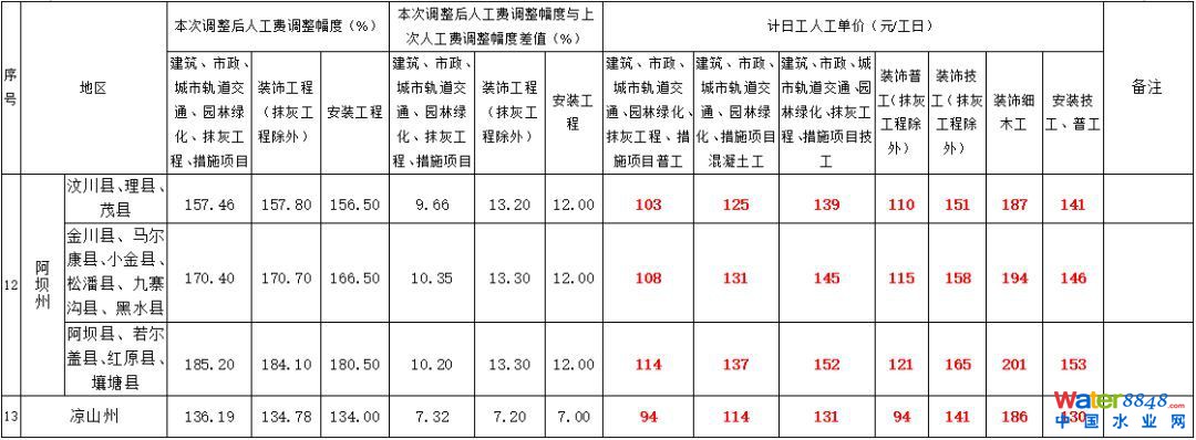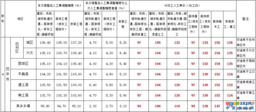 全國各省集中大幅上調(diào)人工單價(jià),四川/河南/廣東/山東/陜西等。