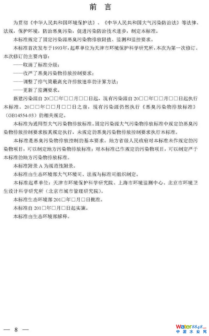 為貫徹《中華人民共和國環(huán)境保護法》和《中華人民共和國大氣污染防治法》,完善國家大氣污染物排放標準,改善空氣環(huán)境質(zhì)量,我部決定修訂國家環(huán)境保護標準《惡臭污染物排放標準(GB 14554-93)》。