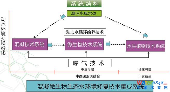 (1)混凝、微生物、水生動(dòng)植物技術(shù)的有機(jī)組合與集成,是英語(yǔ)開(kāi)放型、大體積、長(zhǎng)系列的江河、湖泊、水庫(kù)水體水質(zhì)凈化。