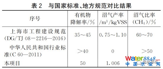 選取近年來(lái)國(guó)內(nèi)投產(chǎn)運(yùn)行的大中型厭氧消化系統(tǒng)進(jìn)行對(duì)比,結(jié)果見(jiàn)表3。根據(jù)有機(jī)物降解率和沼氣產(chǎn)率,可看出本項(xiàng)目主要運(yùn)行指標(biāo)較好。