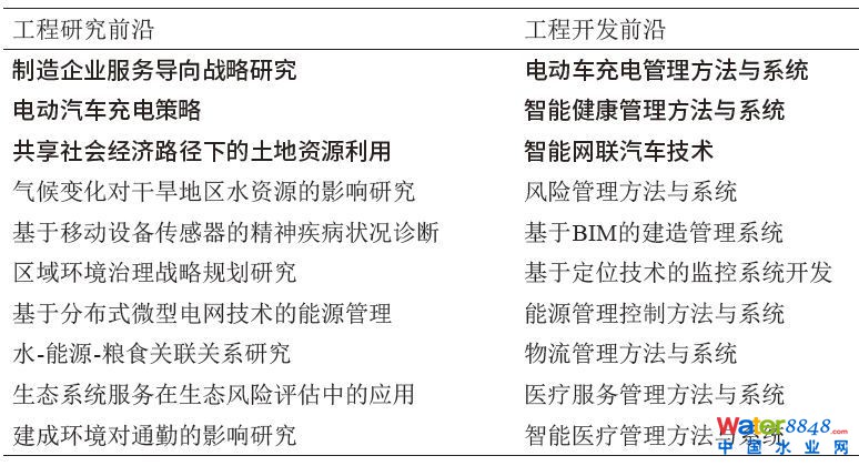 ☟表9 工程管理領(lǐng)域全球工程前沿
