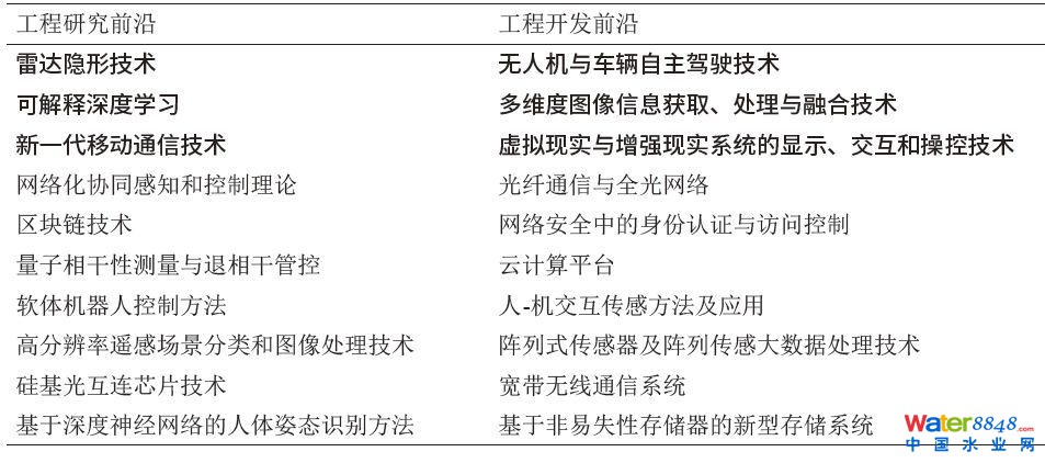 ☟表2 信息與電子工程領(lǐng)域全球工程前沿