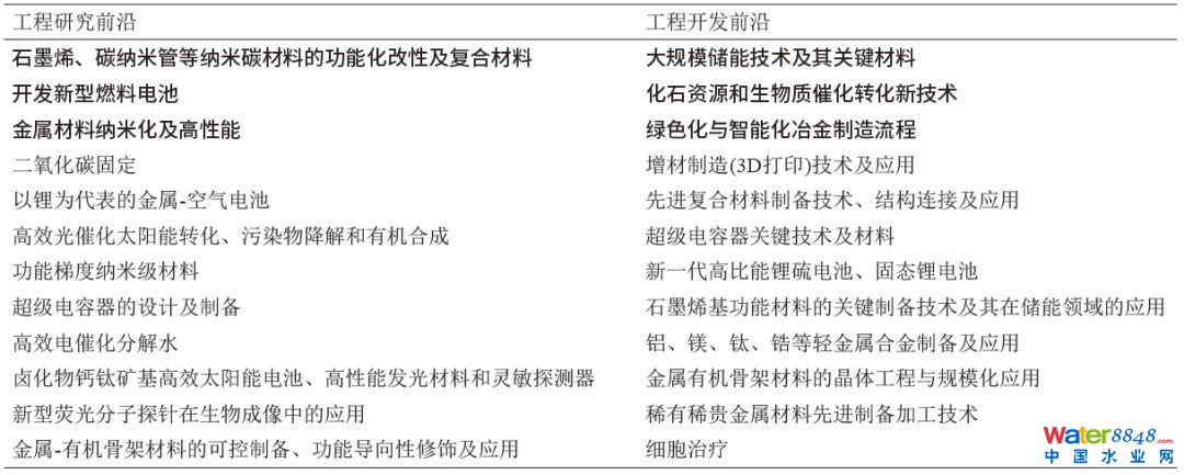 ☟表3 化工、冶金與材料工程領(lǐng)域全球工程前沿