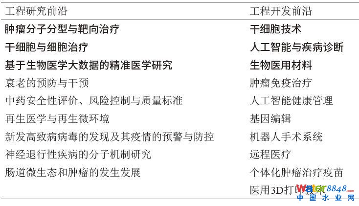 ☟表8 醫(yī)藥衛(wèi)生領(lǐng)域全球工程前沿