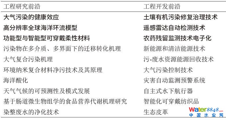 ☟表6 環(huán)境與輕紡工程領(lǐng)域全球工程前沿