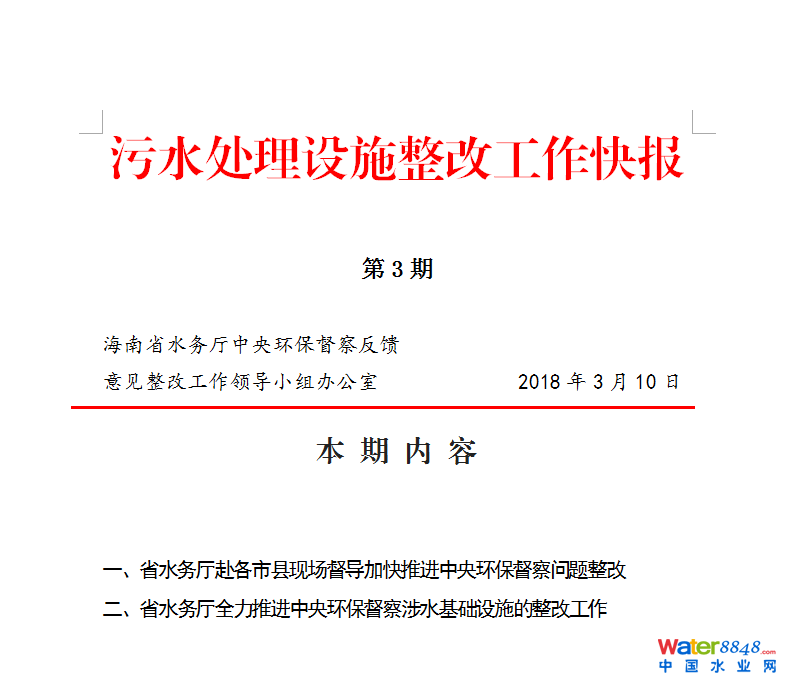 污水處理設(shè)施整改工作快報 2018年(第3期)