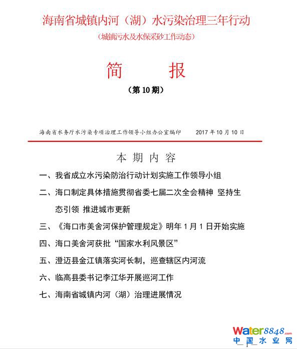 核心提示:海南省城鎮(zhèn)內(nèi)河(湖)水污染治理三年行動(dòng) (城鎮(zhèn)污水及水保采砂工作動(dòng)態(tài)) 簡報(bào) (第10期)