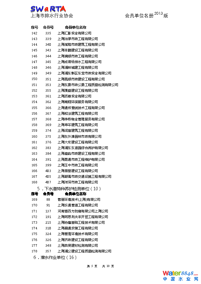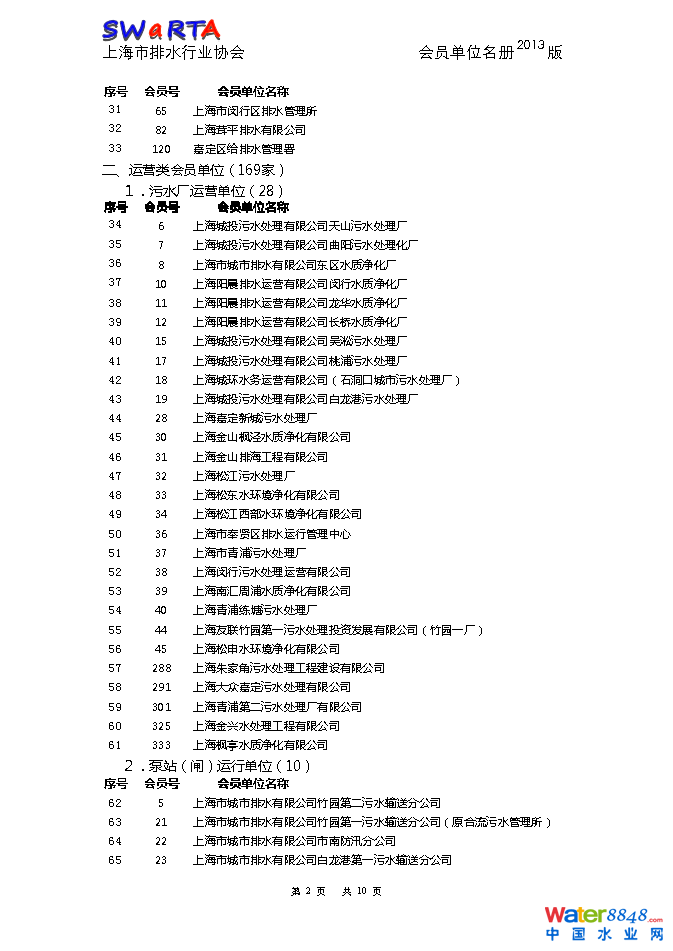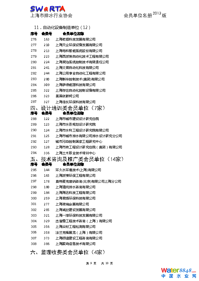 上海市排水行業(yè)協(xié)會(huì)SHANGHAI WATER RECLAMATION TRADE ASSOCIATION(縮寫(xiě)SWaRTA),成立于2005年2月18日,為本市排水行業(yè)企事業(yè)單位自愿組成的跨部門(mén)、跨所有制的非營(yíng)利的行業(yè)性社會(huì)團(tuán)體法人。