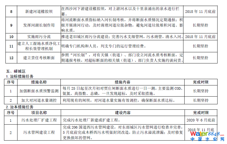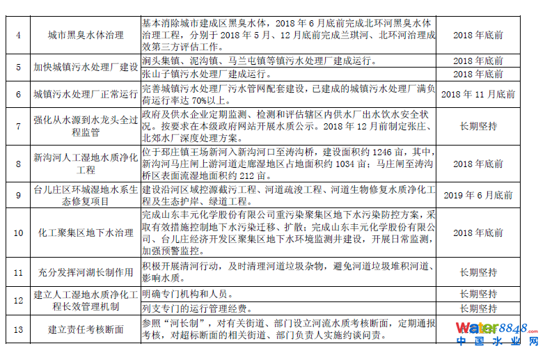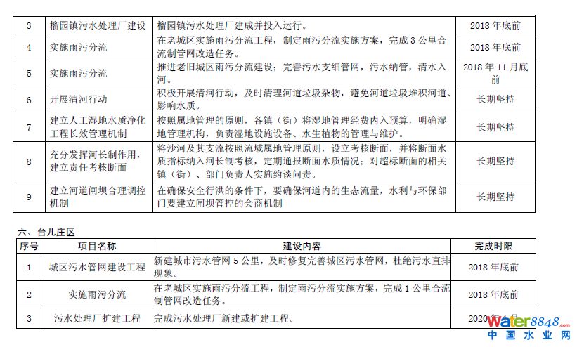 附件:棗莊市流域水污染治理工作任務(wù)表