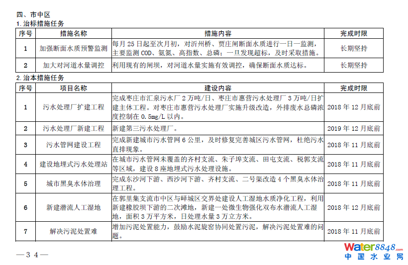附任務(wù)清單 山東棗莊市流域水污染治理作戰(zhàn)方案發(fā)布
