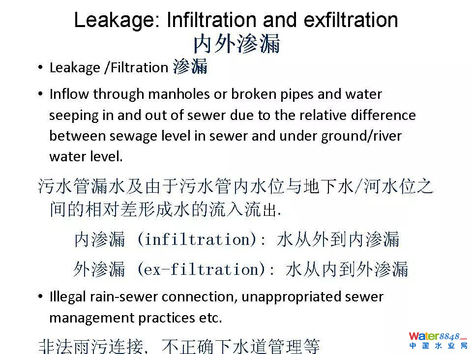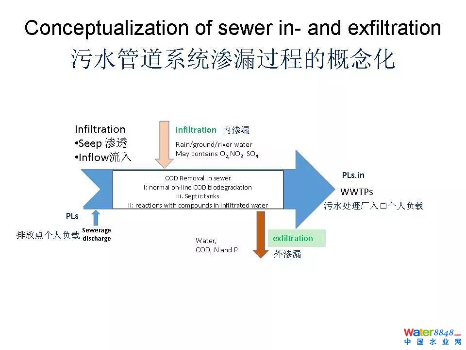 第一,介紹開發(fā)的計算下水道滲漏的簡單方法, 和用于中國、上海、廣州和北京下水道滲漏計算結(jié)果。計算表明整個中國(香港、澳門和臺灣除外)大約一半的污水和含有的COD、氮和磷在下水道系統(tǒng)的運輸過程中滲漏。這不僅浪費了資源, 而且污染了地下水和地表水。由于許多傳質(zhì)過程都采取了擴散形式, 給控制上帶來困難。