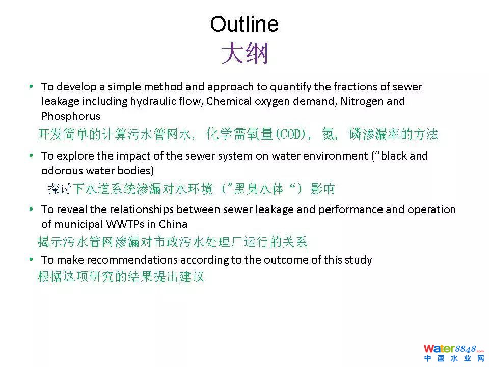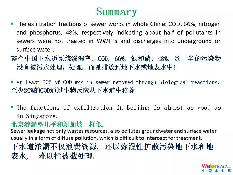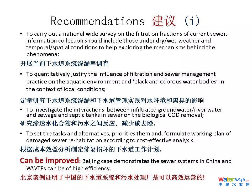 認(rèn)識到下水道系統(tǒng)滲漏是我國許多地方水生態(tài)環(huán)境惡化和城市污水處理廠低效運行的根本原因,由曹業(yè)始領(lǐng)銜若干國內(nèi)外專家組成的小組進(jìn)行了相關(guān)課題研究。主要成果在2018年11月26日在哈爾濱舉行的第四屆城市水科學(xué)峰會和2018年11月30日在重慶舉行的第十三屆中國水務(wù)大會上報告。下面是在會議中使用演示的文稿和提交的出版詳細(xì)摘要。