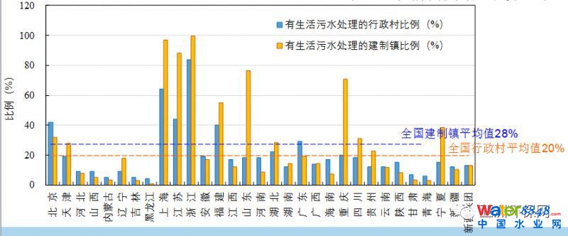 2016年有生活污水處理的建制鎮(zhèn)和行政村比例