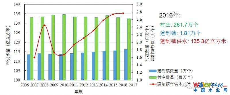 (1)村鎮(zhèn)數(shù)量多,建制鎮(zhèn)水量逐年增加