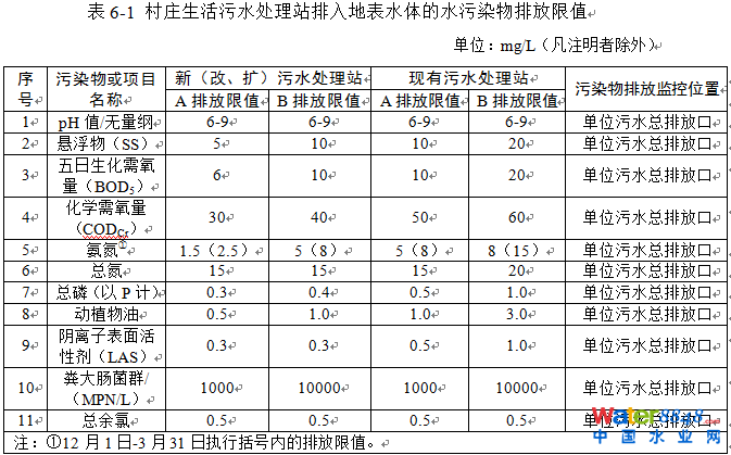 4.1新(改、擴(kuò))建農(nóng)村生活污水處理設(shè)施水污染物排放控制要求