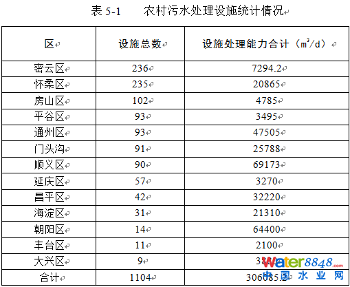2017年《北京市國民經(jīng)濟(jì)和社會發(fā)展統(tǒng)計(jì)公報(bào)》統(tǒng)計(jì)數(shù)據(jù)顯示,全市農(nóng)村常住人口294.1萬人,按照農(nóng)村人均生活污水產(chǎn)生量為100L/d計(jì),北京市農(nóng)村生活污水總量為10735萬m3/年。根據(jù)調(diào)查,截止2017年底,北京已建處理設(shè)施實(shí)際處理水量約為15.6萬m3/d,年處理量5694萬m3/年,還有5041萬m3/年的農(nóng)村生活污水需要進(jìn)行處理,即5041萬m3/年的農(nóng)村生活污水需要按本標(biāo)準(zhǔn)表1的要求,建設(shè)污水處理設(shè)施達(dá)標(biāo)排放。
