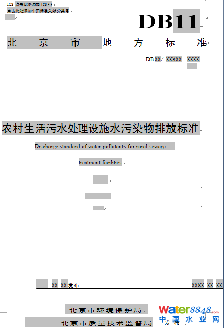 北京:《農(nóng)村生活污水處理設(shè)施 水污染物排放標(biāo)準(zhǔn)》(征求意見稿)