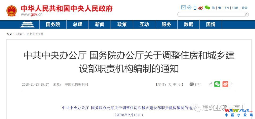 2018年11月13日中國政府網官網公布“中共中央辦公廳 國務院辦公廳關于調整住房和城鄉(xiāng)建設部職責機構編制的通知”,建設工程消防設計審查職責劃入住建部塵埃落定。